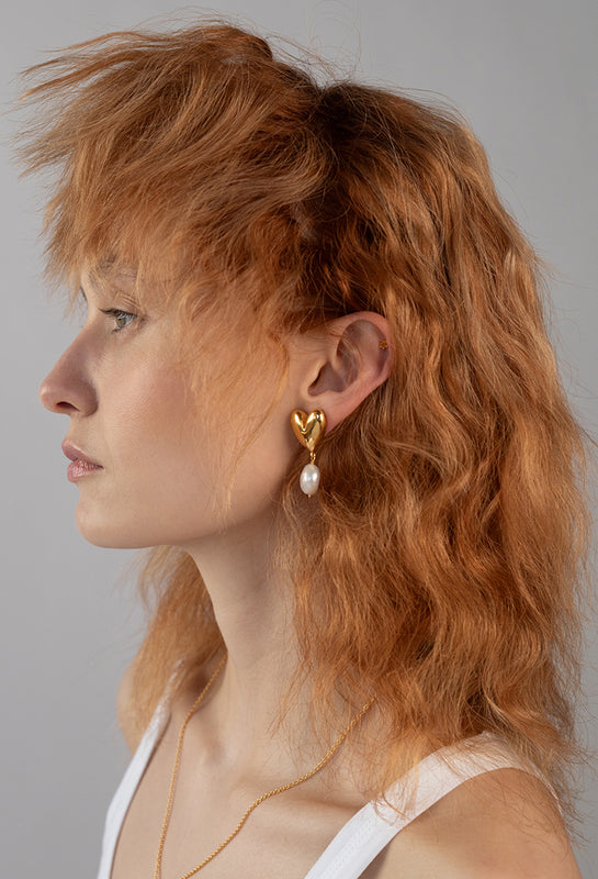 Mondo Heart + Pearl Earrings, Sterling Silver