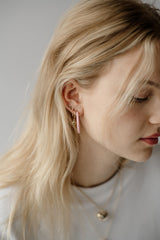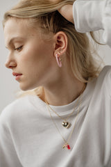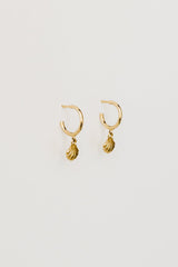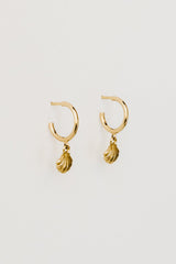 The Seashell Charm Hoops are everyday hoops with a dainty shell charm and stud closure. Wear solo for minimal chic or layer them for a personalised 90s look.