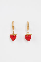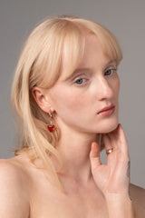 The Strawberry Hoops in glacé red resin and golden brass are a glowing symbol of sensuality and abundance. The sleek hoops are finished with a stud closure. A beautiful look for the artist or nature lover.