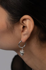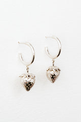 The Strawberry Hoops in sterling silver are a shimmering symbol of sensuality and abundance. The sleek hoops are finished with a stud closure. A beautiful look for the artist or nature lover.