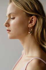 The Puffy Heart Hoops make a bold statement, these three dimensional puffy hearts are bold but light weight on the perfectly balanced midi hoops in gold vermeil! Nail your 90s flashback look to perfection.