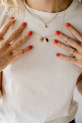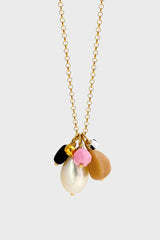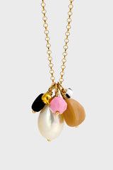 A dreamy confection of colour to wear close to your heart. The Bonbon Necklace in gold plate features a cluster of removable hand beaded freshwater pearls, vintage West German pressed glass beads and Czech glass seed beads in shades of caramelbubblegum, licorice and gold. The ideal jangles for any occasion.