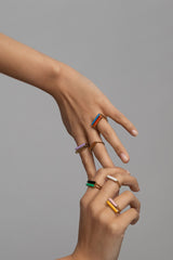 Our classic stacker ring in stunning golden brass features a Lavender resin setting. Wear these stacked with other colours or solo.