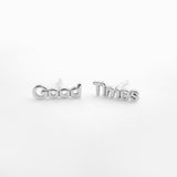 Here for a good time! Designed to make you feel good. The word studs will add a dash of fun and humour to your lobes.