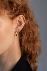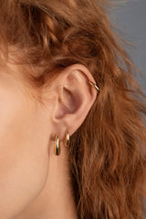 The Eclipse Hoops are an elegant oval-shaped, mini hoop style with a clicker closure and hinge detail. Wear solo for minimal chic or layer them for a curated ear look.