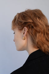 Worn here in second and helix piercings.