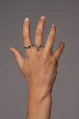 The Heart Signet Ring is a sleek square take on the classic signet shape, featuring a black heart inlay. A light-catching look for the minimalist jewellery lover.